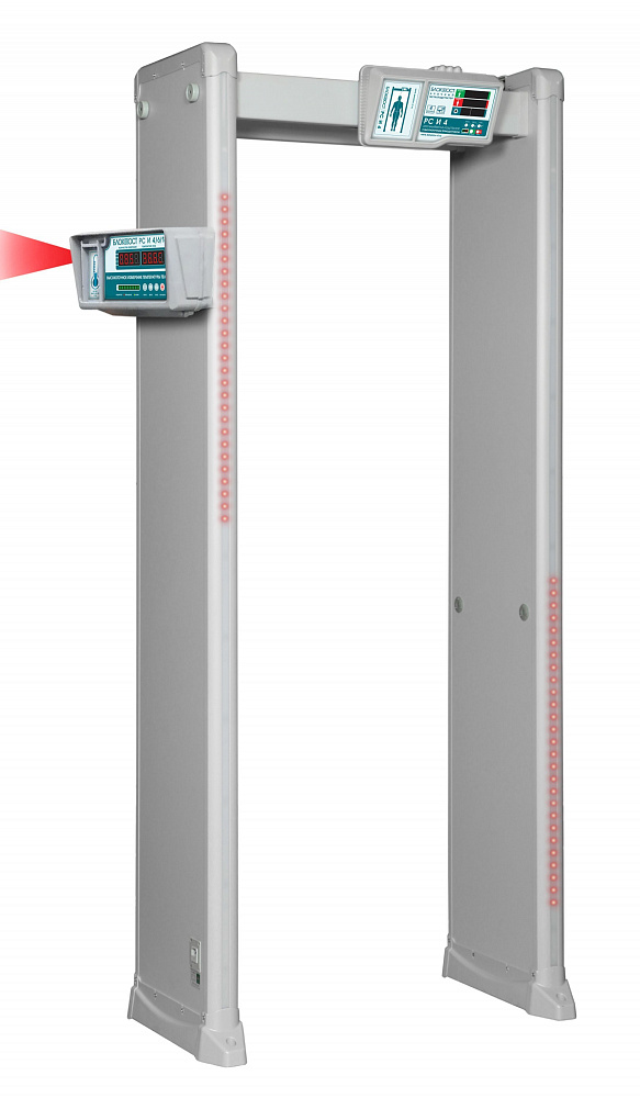 Компания «БЛОКПОСТ» представляет новую модель арочного металлодетектора – БЛОКПОСТ РС И 4 с высокоточным бесконтактным пирометром. Этот металлодетектор предназначен не только для выявления запрещенных к проносу металлических изделий, но и для измерения температуры тела входящего в рамку человека. Досмотр проходит в потоковом режиме с выдачей сигнала тревоги при превышении установленного предельного значения. Сигналы наличия металлических предметов и превышения температуры могут быть различными по тональности и громкости, различны и световые сигналы. Служба безопасности без труда определит, какой из показателей превышен. РС И 4 с пирометром, как и все металлодетекторы БЛОКПОСТ последнего поколения, обладает эталонной чувствительностью и помехозащищенностью и способен отличать бытовые металлические предметы от запрещенных к проносу.