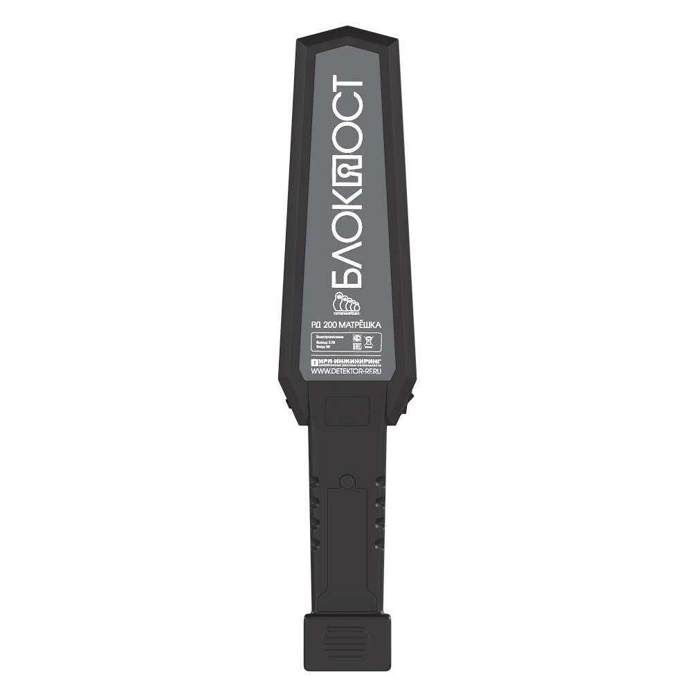 Блокпост РД 200 МАТРЁШКА Ручной металлодетектор серии; обладает высокой чувствительностью и большой сканирующей поверхностью, что позволяет обнаруживать все виды металлов; от -15 до +60 °C; 415х90х33мм; 0,3кг.