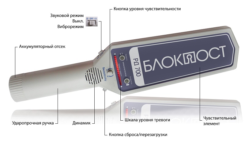 Блокпост РД 700 ручной металлодетектор; от -20 до +55 °C; 320х70х40мм; 0,2 кг.
