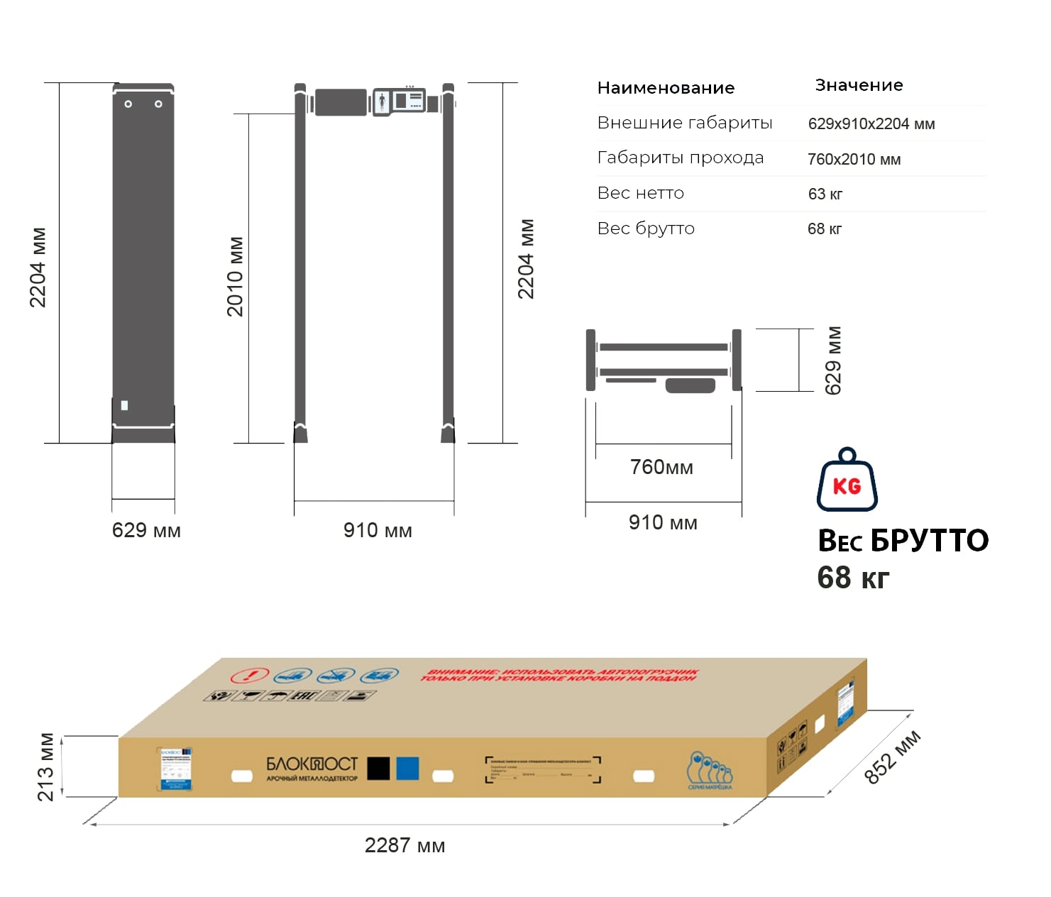 Габариты прохода (мм) ДхШхВ: 560х760x2000