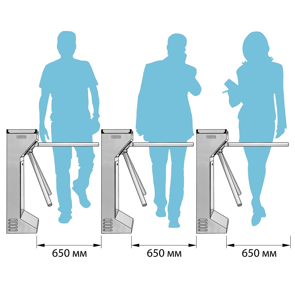 Турникет-трипод ТРД 600 — это универсальное решение для организации контроля пропускной системы безопасности на территории охраняемых объектов, где одинаково важны компактные размеры, прочность конструкции и высокая пропускная способность. Малые размеры и вес турникета позволяют установку в условиях ограниченного пространства и на любой поверхности пола. Надежный механизм гарантирует длительную безотказную работу турникета при интенсивной эксплуатации. Контроль доступа через проходную систему осуществляется путем считывания карт, либо пультом управления. С функцией «Антипаника» турникет ТРД 600 обеспечивает безопасность аварийного прохода в случае экстренной ситуации, либо сбоя электроснабжения. Данный турникет-трипод является лидером среди прочих пропускных систем на мировом уровне.