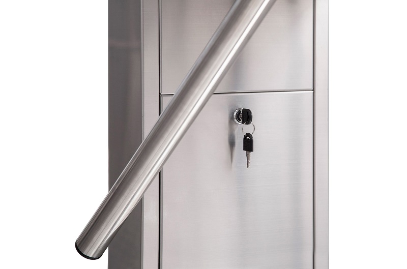 Тумбовые турникеты-триподы серии ТМБ, благодаря компактным размерам конструкции и высокой пропускной способности, являются самым удобным вариантом для охраны входа предприятий и организаций. Трипод БЛОКПОСТ ТМБ 800 может быть оснащен системой распознавания лиц, счетчиком количества проходов, аппаратным ключом, светофором и пультом управления. В случае аварийной ситуации или сбоя питания срабатывает автоматическое опускание штанги, что гарантирует свободный выход при эвакуации. Турникет оборудован различными режимами пропускной системы контроллера. Есть возможность устанавливать одно- или двунаправленную функцию пропускной системы. Возможно интегрировать стороннее оборудование с использованием реле «сухой контакт».