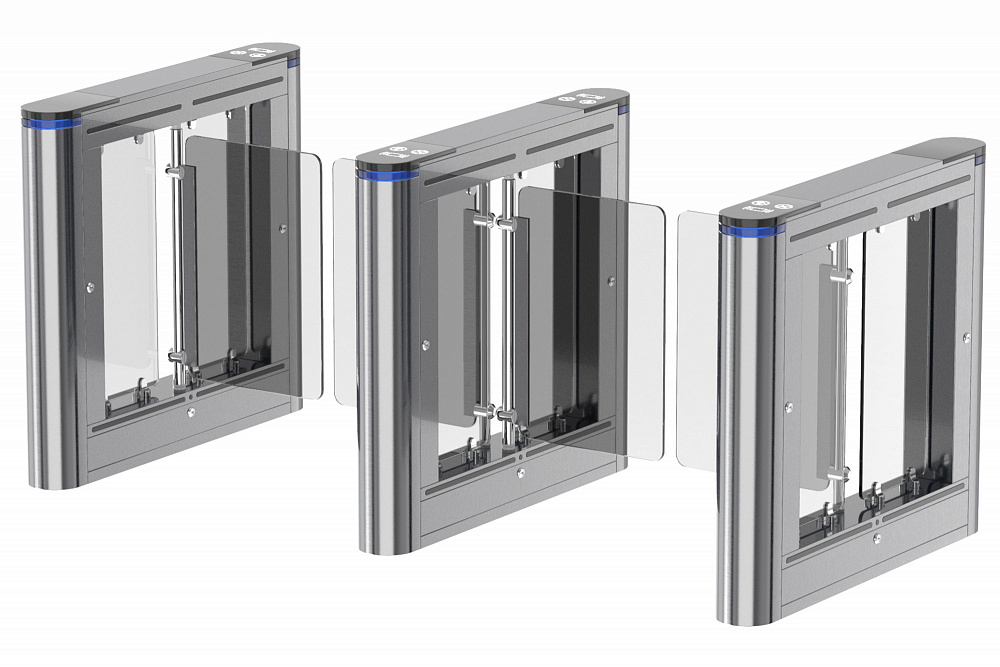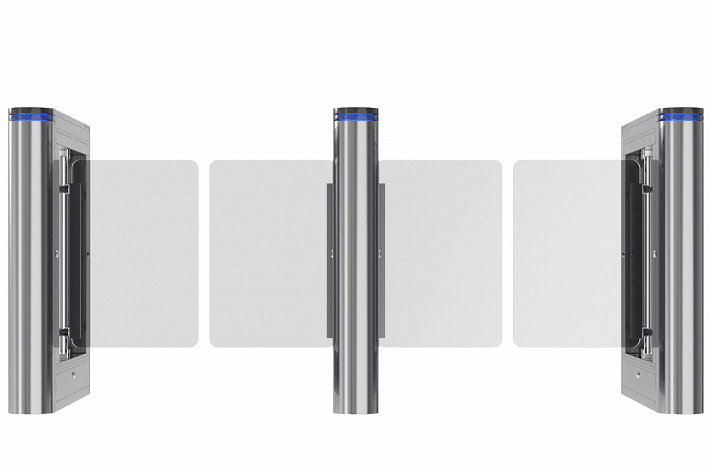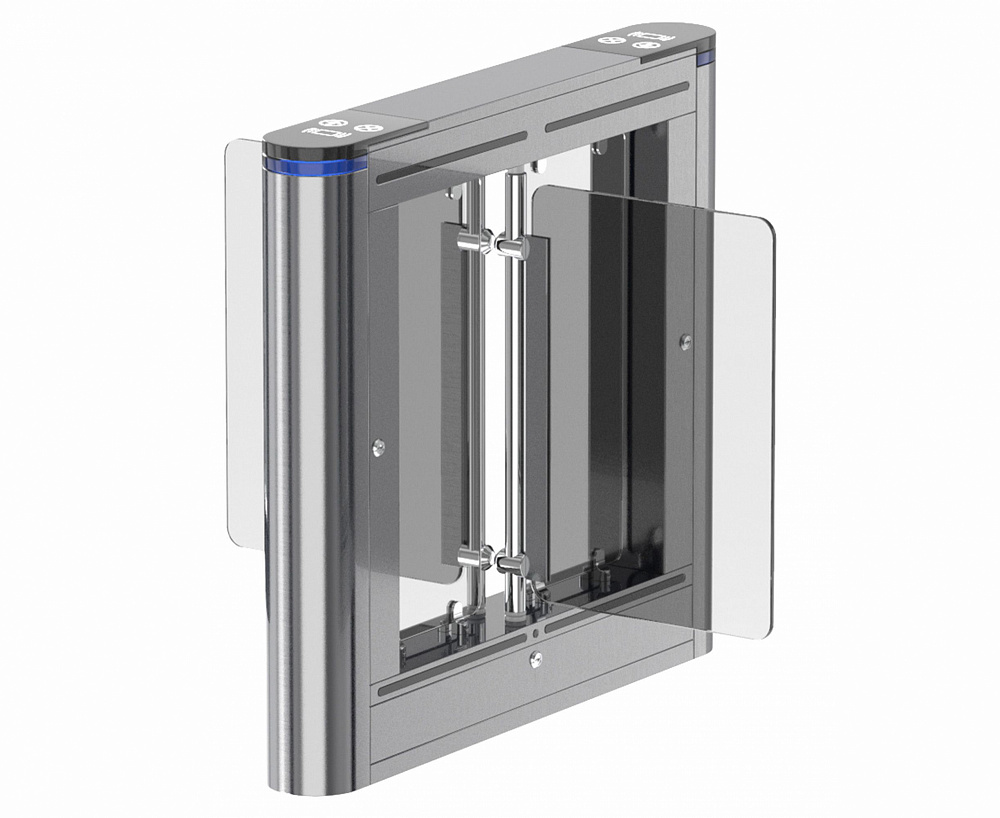 Распашные турникеты предназначены для организации проходных с повышенными требованиями к дизайну и комфортабельности прохода. РСП 800 С – достаточно компактная модель с высокой проходимостью, которая подойдет для применения в интенсивных условиях эксплуатации. Турникет РСП 800 С – это преграждающая конструкция, имеющая створки, которые закреплены на вертикальных валиках и могут распахиваться как в одну сторону, так и в другую. Распашной турникет оборудован функцией «Антипаника». Эта функция автоматически освобождает проход в экстренных случаях или при сбое электропитания, также она может быть активирована с пульта ДУ.
