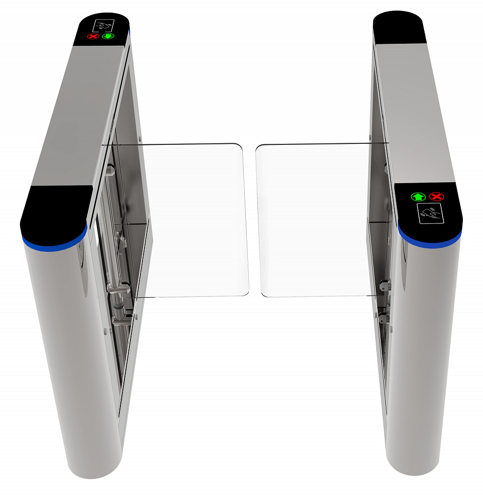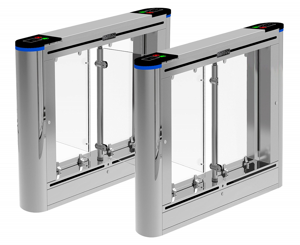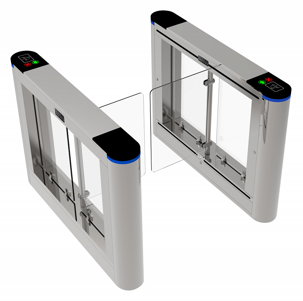 Распашные турникеты предназначены для организации проходных с повышенными требованиями к дизайну и комфортабельности прохода. РСП 500 – достаточно компактная модель с высокой проходимостью, которая подойдет для применения в интенсивных условиях эксплуатации. Турникет РСП 500 – это преграждающая конструкция, имеющая створки, которые закреплены на вертикальных валиках и могут распахиваться как в одну сторону, так и в другую. Распашной турникет оборудован функцией «Антипаника». Эта функция автоматически освобождает проход в экстренных случаях или при сбое электропитания, также она может быть активирована с пульта ДУ.