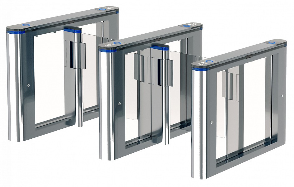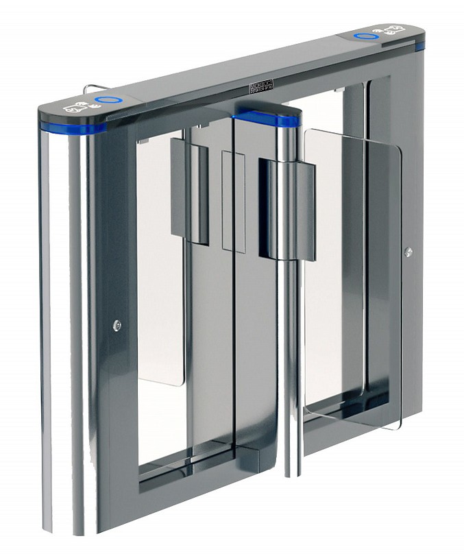 Распашные турникеты предназначены для организации проходных с повышенными требованиями к дизайну и комфортабельности прохода. РСП 1400 – достаточно компактная модель с высокой проходимостью, которая подойдет для применения в интенсивных условиях эксплуатации. Турникет РСП 1400 – это преграждающая конструкция, имеющая створки, которые закреплены на вертикальных валиках и могут распахиваться как в одну сторону, так и в другую. Распашной турникет оборудован функцией «Антипаника». Эта функция автоматически освобождает проход в экстренных случаях или при сбое электропитания, также она может быть активирована с пульта ДУ.