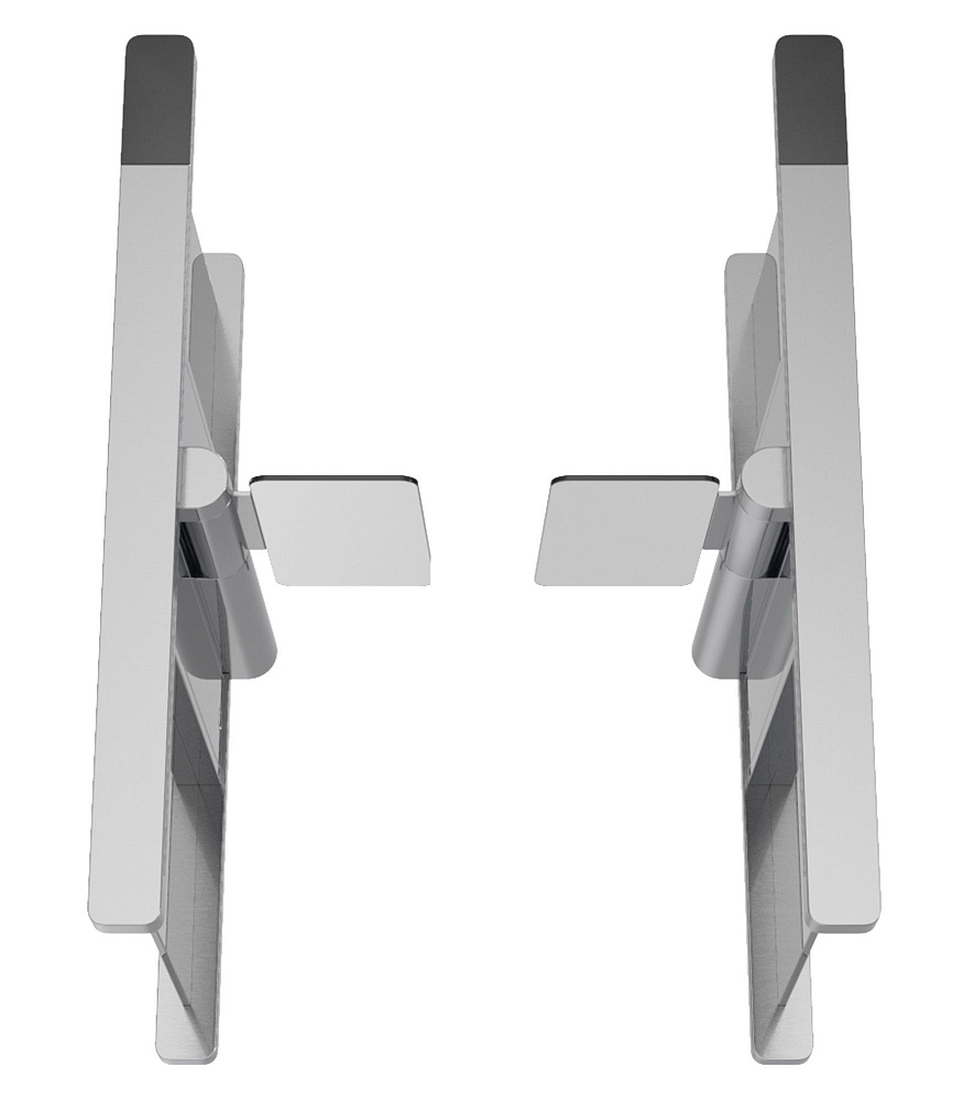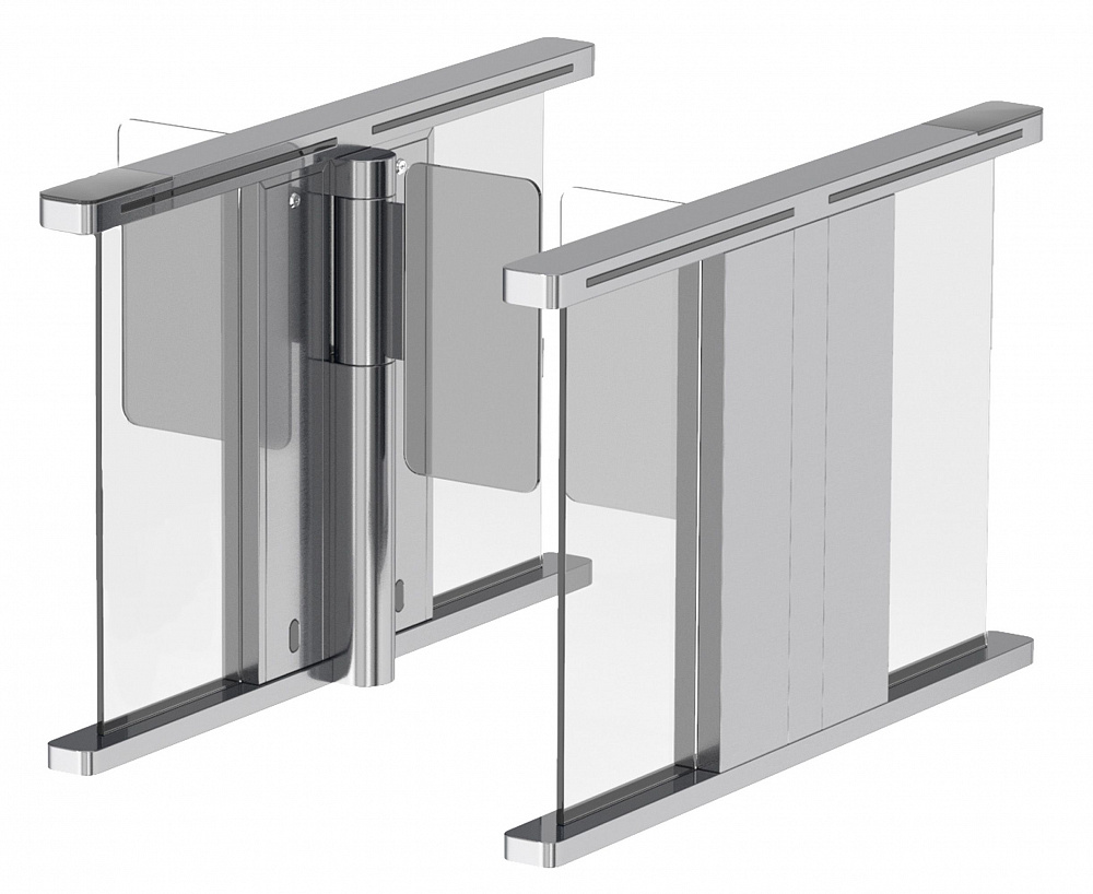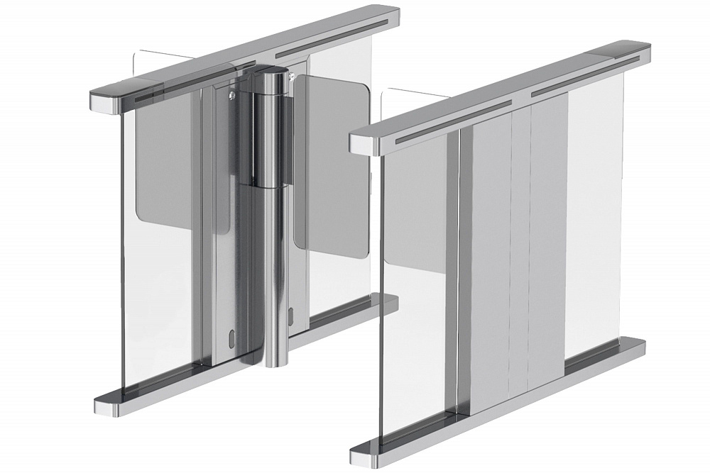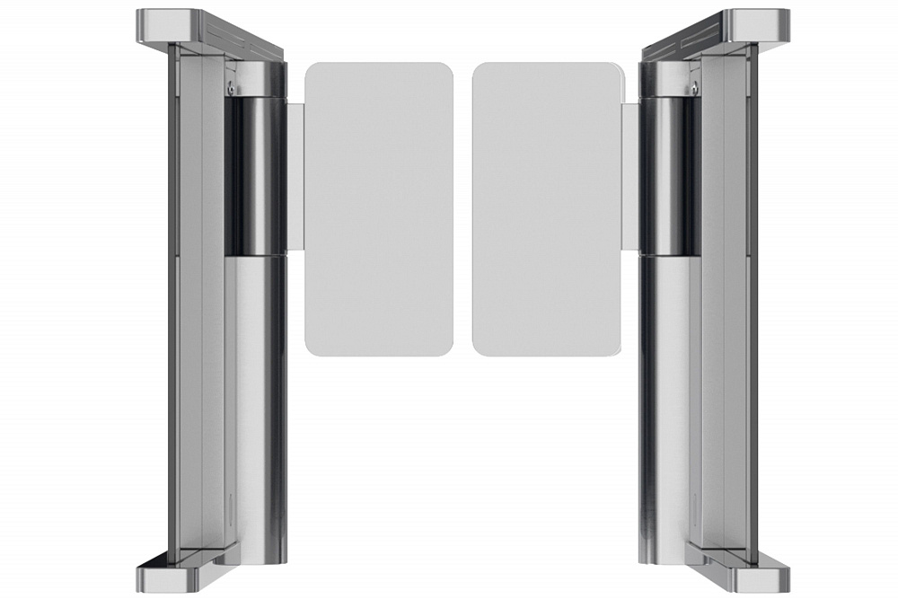 Распашные турникеты предназначены для организации проходных с повышенными требованиями к дизайну и комфортабельности прохода. РСП 900 – достаточно компактная модель с высокой проходимостью, которая подойдет для применения в интенсивных условиях эксплуатации. Турникет РСП 900 – это преграждающая конструкция, имеющая створки, которые закреплены на вертикальных валиках и могут распахиваться как в одну сторону, так и в другую. Распашной турникет оборудован функцией «Антипаника». Эта функция автоматически освобождает проход в экстренных случаях или при сбое электропитания, также она может быть активирована с пульта ДУ.