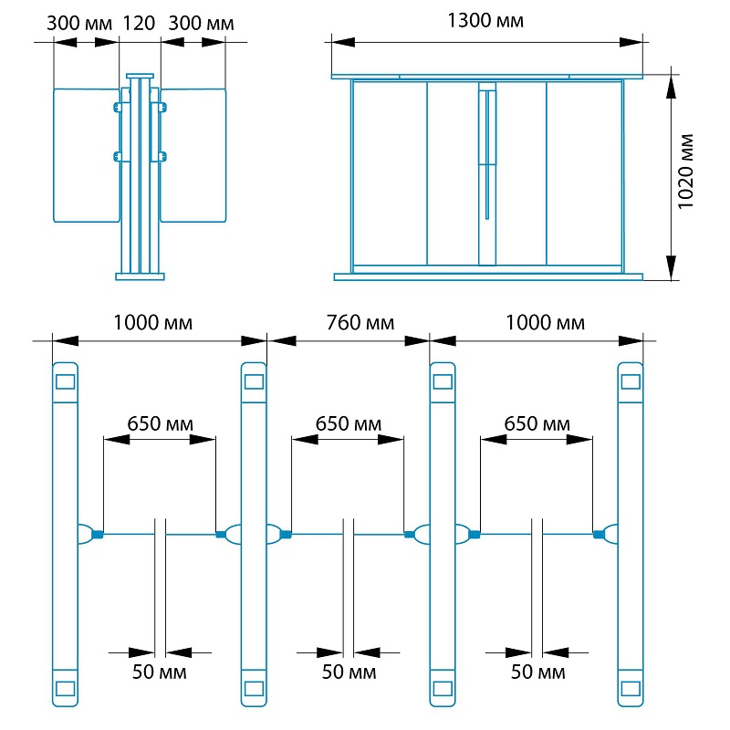Внешние габариты (мм) ДхШхВ: 1300х120х1020