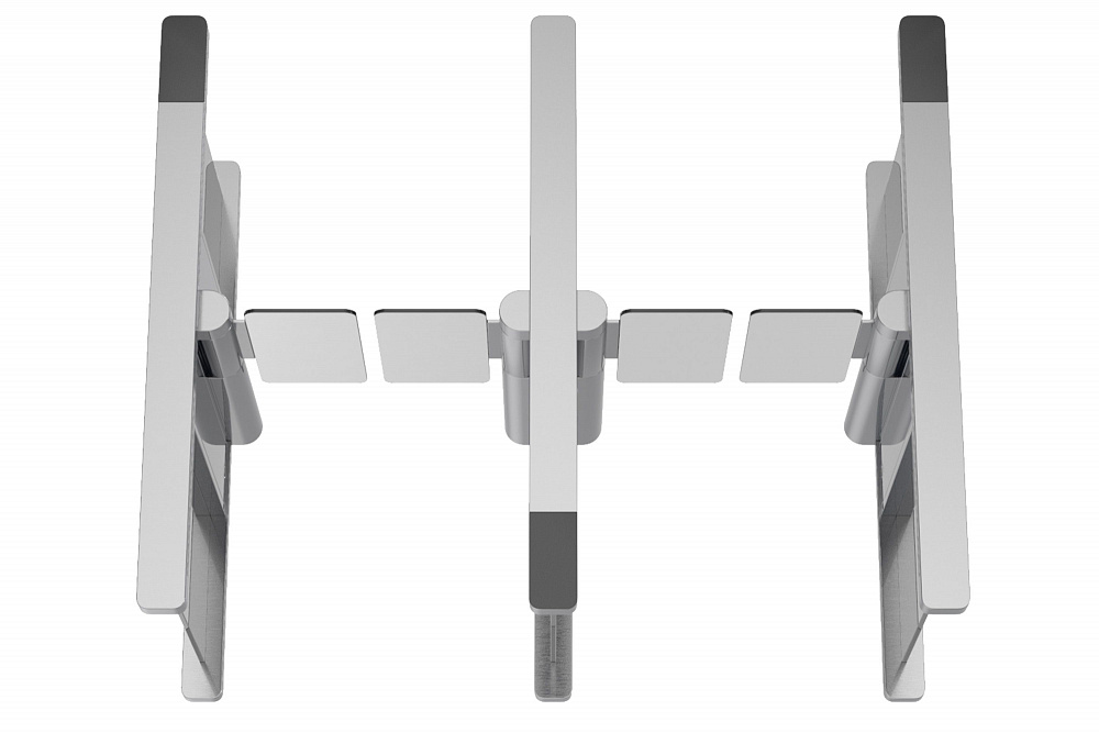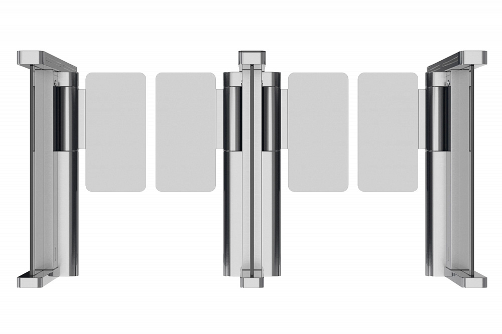 Распашные турникеты предназначены для организации проходных с повышенными требованиями к дизайну и комфортабельности прохода. РСП 1800 – достаточно компактная модель с высокой проходимостью, которая подойдет для применения в интенсивных условиях эксплуатации. Турникет РСП 1800 – это преграждающая конструкция, имеющая створки, которые закреплены на вертикальных валиках и могут распахиваться как в одну сторону, так и в другую. Распашной турникет оборудован функцией «Антипаника». Эта функция автоматически освобождает проход в экстренных случаях или при сбое электропитания, также она может быть активирована с пульта ДУ.
