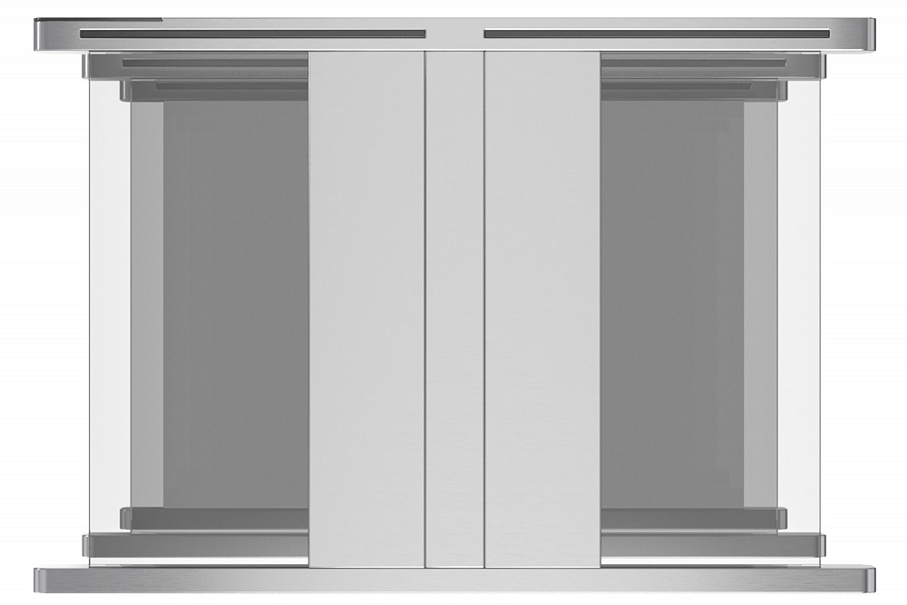 Распашной турникет РСП 1800 предназначен для использования внутри помещения. Также его можно использовать на улице, создав условия непрямого воздействия атмосферных осадков и при рекомендуемой температуре воздуха от -20 до +75°С. Турникет изготовлен из нержавеющей стали AISI 304, а створки ограждения – из стекла толщиной 7 мм. При использовании РСП 1800 следует располагать параллельно друг другу в один ряд. Расстояние между тумбами турникета составляет 650 мм.