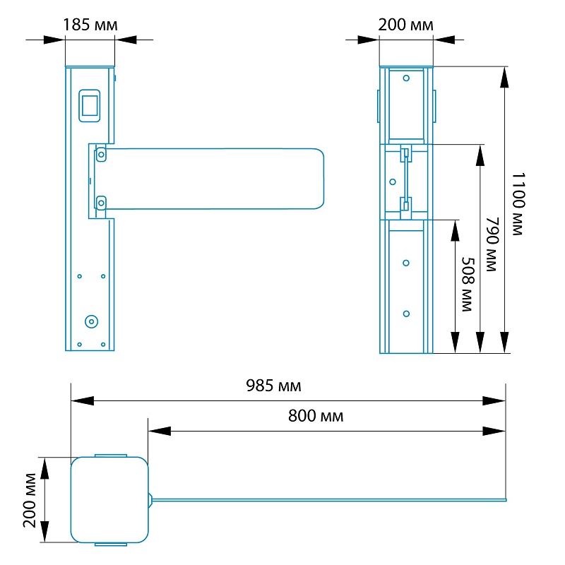 Внешние габариты (мм) ДхШхВ: 185х200х1100