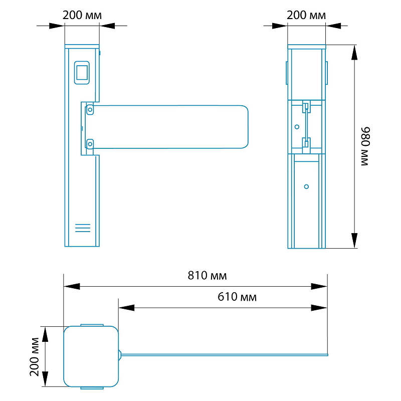 Внешние габариты (мм) ДхШхВ: 200х200х980