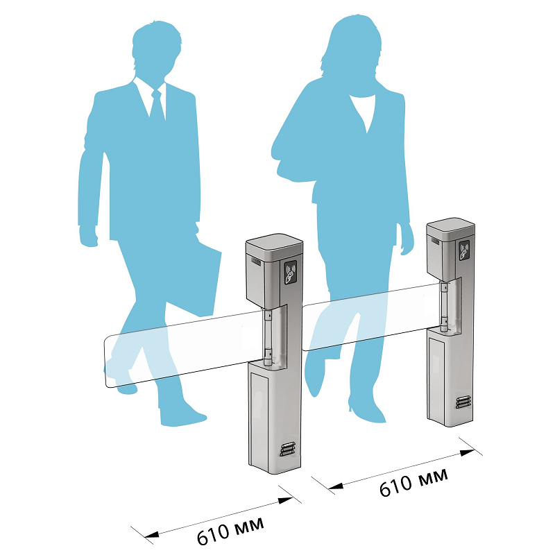 Калитка КЛ 600 С изготовлена из нержавеющей стали AISI 304. Створки могут быль выполнены как из металла, так и акрилового или калёного стекла. При обустройстве входной зоны калитки рекомендуется располагать параллельно друг другу в одну линию на расстоянии от 600 мм.