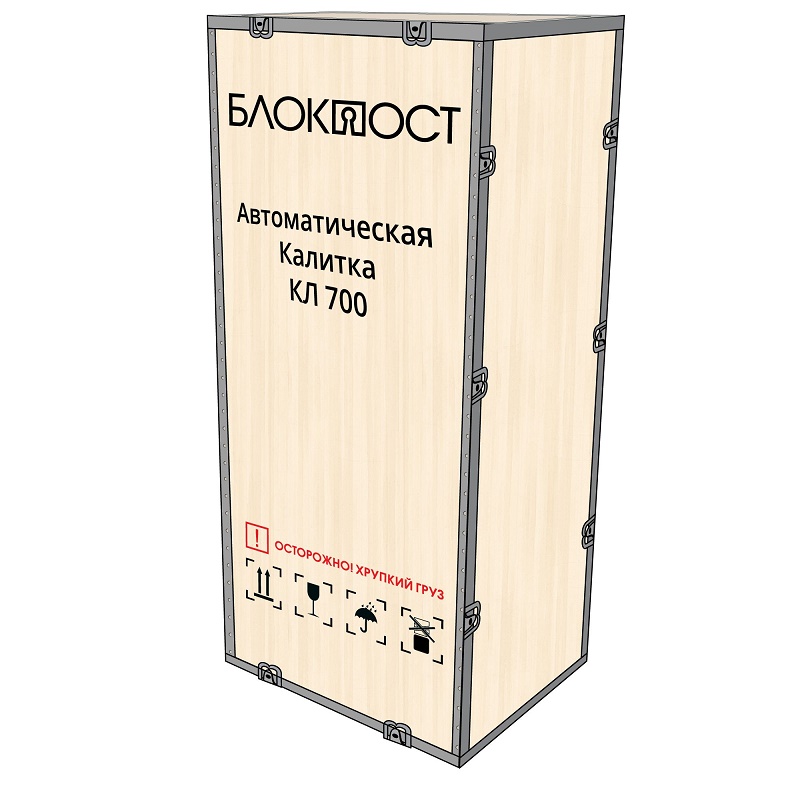 Индивидуальная упаковка служит для защиты оборудования от серьезных повреждений во время транспортировки и хранения. Упаковка представляет собой прочный деревянный короб. Внутри него пенопластовые перегородки располагаются между элементами оборудования и у внешних стенок. Калитку КЛ 700 можно перевозить в гермокабинах самолетов, автомобильным и железнодорожным транспортом. Устройство необходимо защитить от влаги, пыли и различных атмосферных осадков, соблюдая правила перевозки, хранения и эксплуатации грузов.