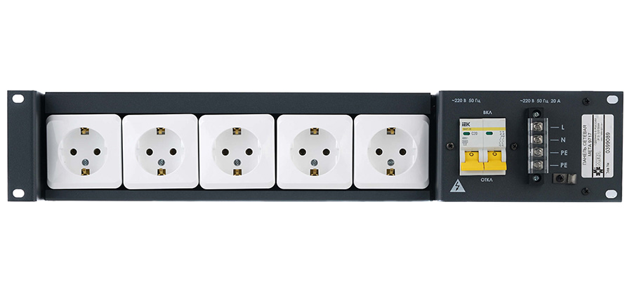 МЕТА 9717 панель сетевая; 5 розеток; 20А; встроенный фильтр; 88х482х100 мм; 3 кг.