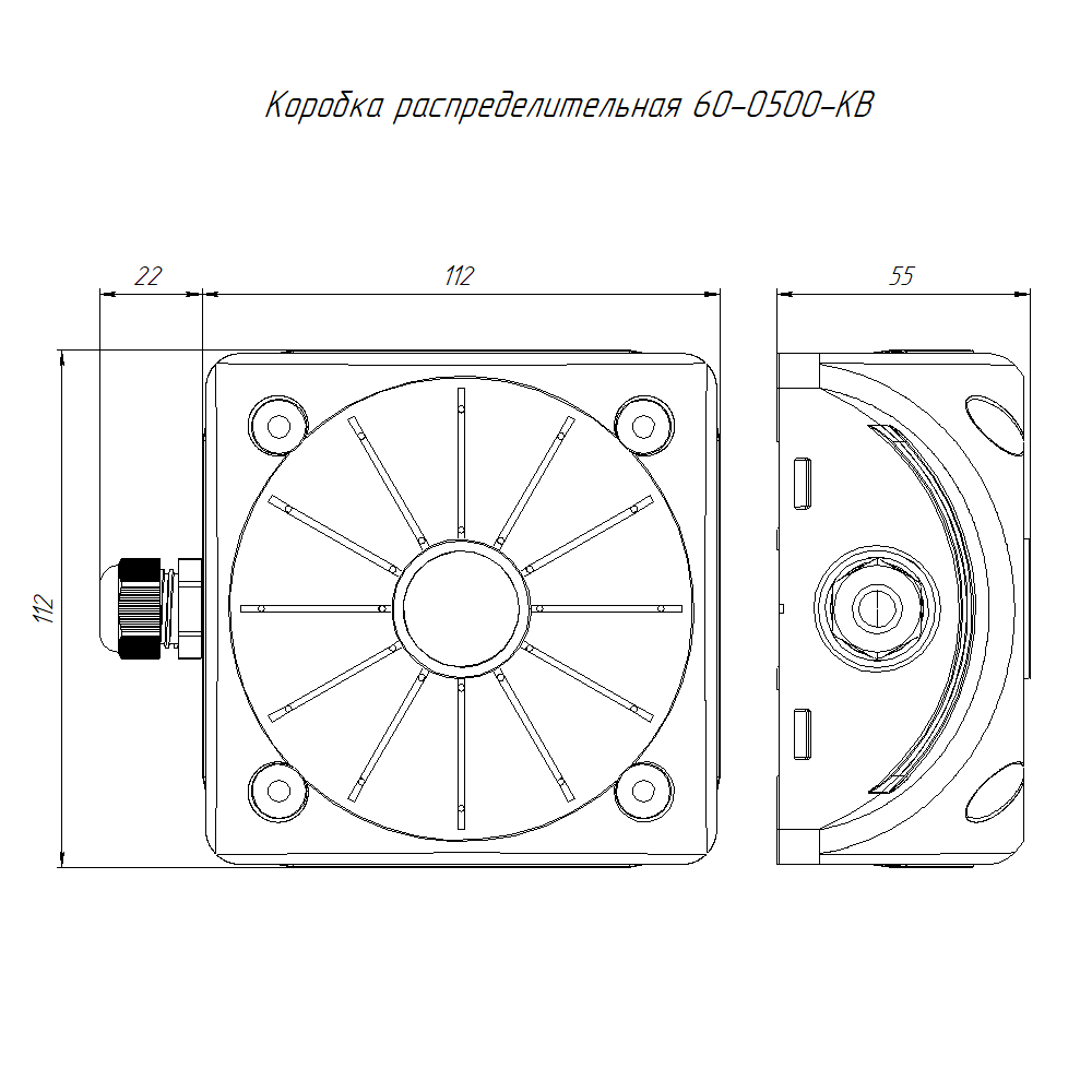60-0500-КВ Коробка распределительная 60-0500-КВ для видеокамер двухкомпонентная безгалогенная (HF) серая 100х100х50 с кабельным вводом Промрукав; RAL7035; -45...60°C; IP68; 0,196 кг.