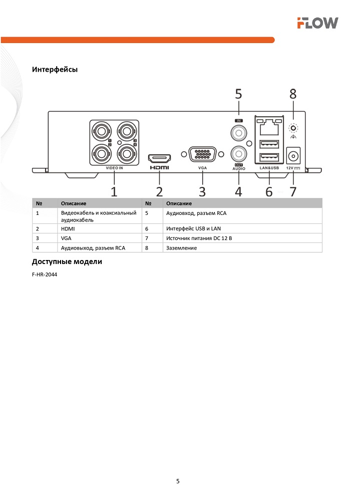 F-HR-2044 4-х канальный гибридный HD-TVI регистратор c технологией SharpSense и AoC iFlow; запись: TVI: 3Мп@12к/с (1й канал); 4Мп Lite, 1080p@15к/с, 1080p Lite /720p Lite /720p@25к/с; аналоговые камеры: WD1@25к/с; IP: до 6Мп - входящий битрейт 72Мб/с; 4 канала BNC; 1 канал RCA, (4 канала AoC); 1 VGA и 1 HDMI до 1080Р; H.265 Pro/ H.265/ H.265+/ H.264/ H.264+; аудиосжатие G.711u., обнаружение движения 2.0, 1 SATA для HDD до 10Тб; 1 RJ-45 10M/ 100M Ethernet интерфейс; 2 USB2.0; -10°C до +55°C; 12В DC: 18Вт макс (без HDD).,пластик, блок питания в комплекте.