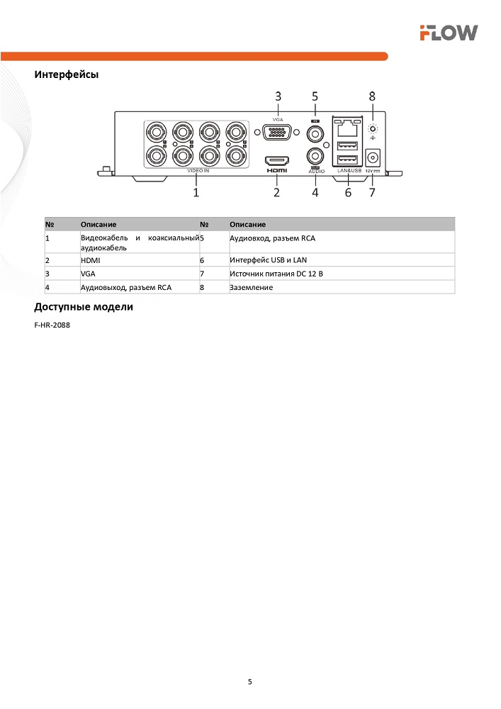 Видеорегистратор F-HR-2088 является 8 канальным 5 Мп H.265 Extra Analog DVR