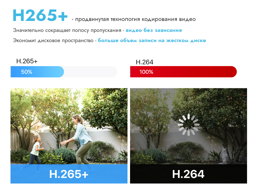 Формат записи видео / аудио: H.265+,H.265, H.264+, H.264 / G.711u, G.711a, G.722, G.726 (cовместно с видео LAN)