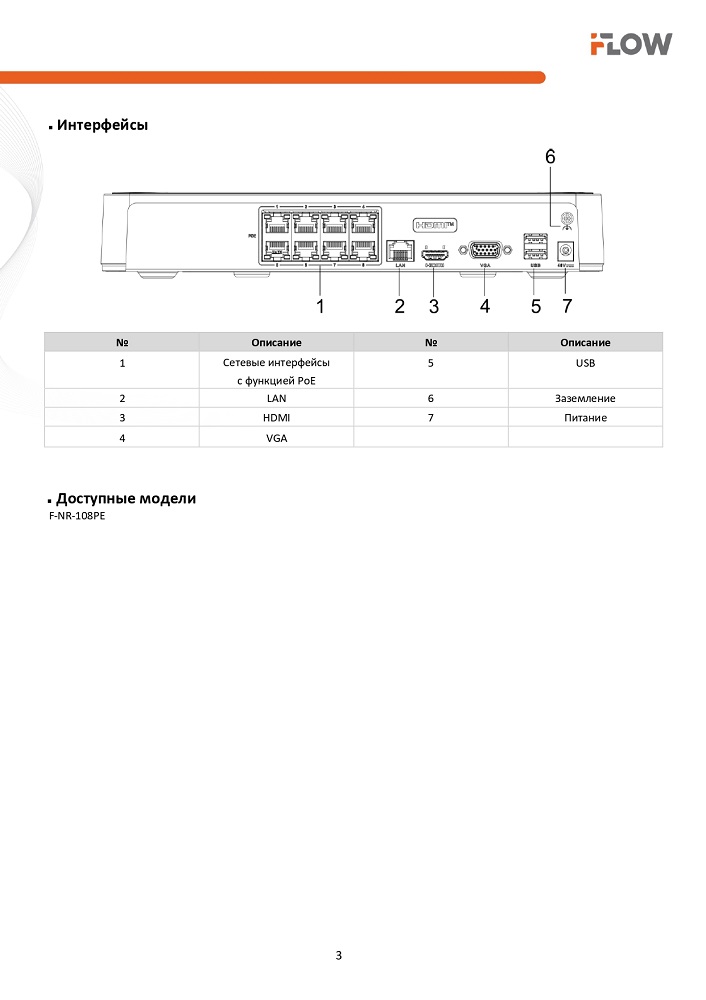 F-NR-108PE 8-ми канальный IP-регистратор c 8-ю PoE интерфейсами iFlow; 8 IP@6Мп; 1 канал RCA; 1 VGA и 1 HDMI до 1080Р; H.265+/H.265/ H.264+/H.264; входящий поток 60 Мбит/с; исходящий поток 60Мбит/с. разрешение записи: до 6Мп. Синхр.воспр. 4 канала@2Мп; 2 канала@4Мп; 1 канал@6Мп; 8 независимых PoE интерфейса 10/100M; IEEE 802.3 af/at, бюджет PoE 75Вт, поддержка событий обнаружения движения 2.0 IP-камер; поддержка режима передачи до 300м,10Мбит/с, CAT6; 1 SATA для HDD до 8Тб, 1 10/100M Ethernet интерфейс; 2 х USB2.0; -10°C до +55°C; 48В DC; 95Вт макс (без HDD)., пластик, блок питания в комплекте.