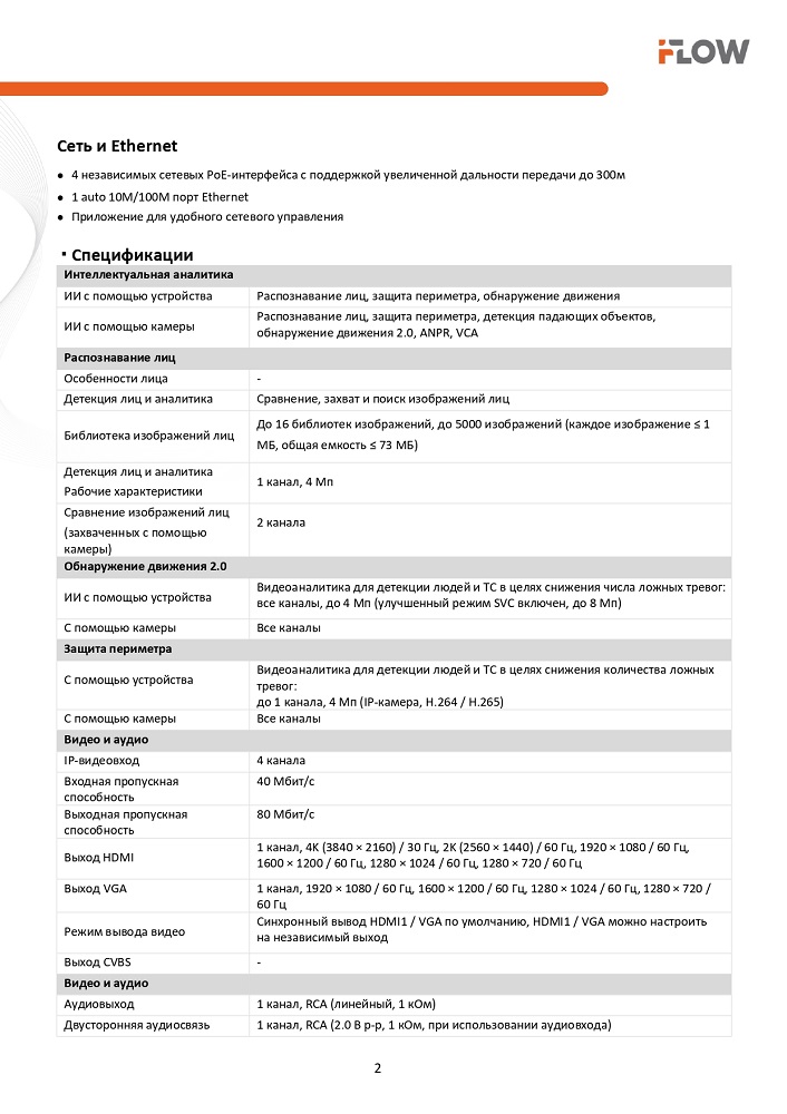 IP-видеовходы: до 4-х каналов; технология Plug & Play, 4 PoE-интерфейса