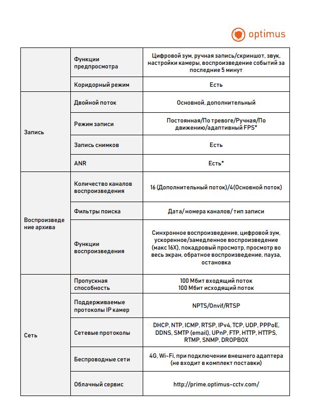 Возможность хранения данных обеспечивают форматы сжатия видео H.264/H.265/H.265+. и жесткие диски до 16 ТБ. Резервное копирование может производиться через USB, WEB, VMS. Видеорегистратор обладает возможностями удаленного мониторинга: WEB интерфейс, PRIME VMS (Windows), PRIME Connect (IOS/Android). Поддержка беспроводных сетей (при подключении внешнего адаптера)