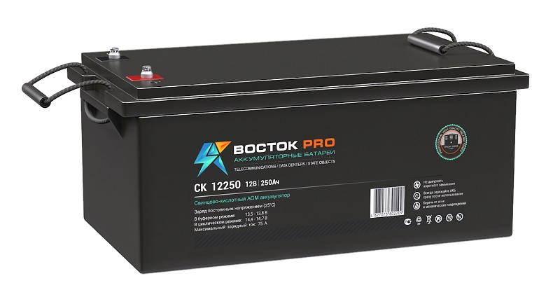 СК 12250 аккумулятор Восток; 12В; 250 Ач; от -20°C до 60°С; 520х269х220 мм; 67,2 кг.