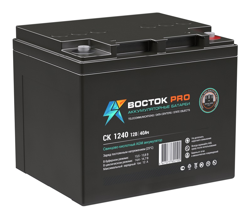 СК 1240 аккумулятор Восток; 12В; 40Ач; от -20°C до 60°С; 198х166х170 мм; 12,6 кг.