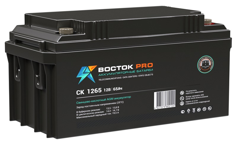 СК 1265 аккумулятор Восток; 12В; 65Ач; от -20°C до 60°С; 350х167х173 мм; 19 кг.