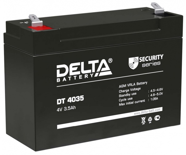 Аккумулятор Delta DT 4035; 4В; 3.5Ач;-20÷50 °C; 90х34х60 мм; 0,46 кг.