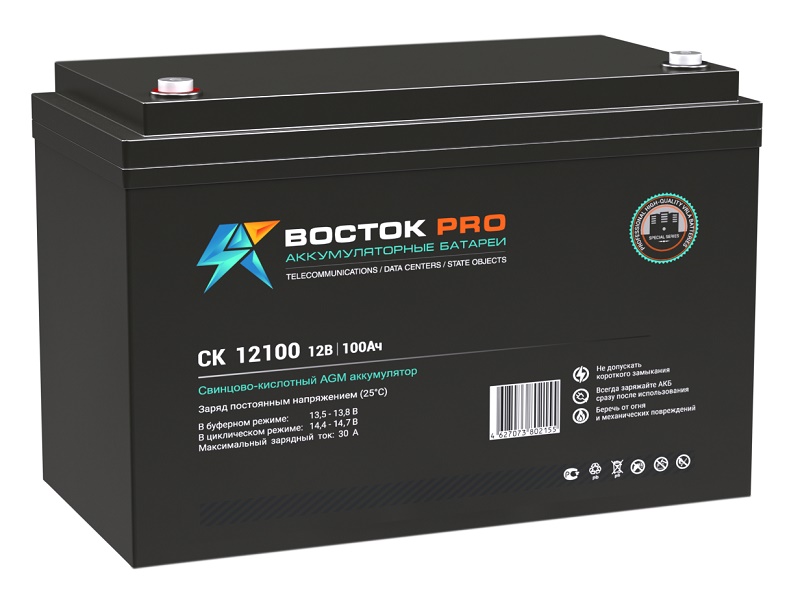 Аккумулятор СК 12100 Восток; 12В; 100Ач; от -20°C до 60°С; 330х171х315мм; 31,2 кг.
