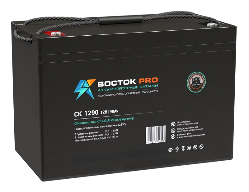 Аккумулятор СК 1290 Восток; 12 В; 90 Ач; от -20°C до 60°С; 307х168х210 мм; 26,5 кг.