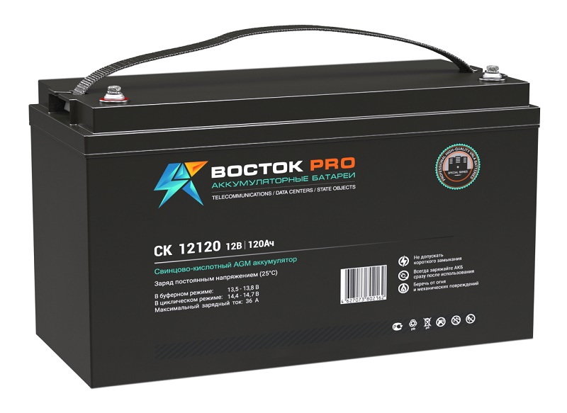 Свинцово-кислотные аккумуляторы ВОСТОК серии CK предназначены для использования в системах бесперебойного питания, резервного энергоснабжения, автономных энергосистемах. Изготовлены по AGM технологии (электролит, абсорбированный в стекловолоконном сепараторе), являются герметизированными и необслуживаемыми, со сроком службы в буферном режиме 10 лет (от 5 до 26 Ач – 5 лет). Обладают высокими разрядными и эксплуатационными характеристиками благодаря использованию в составе электролита и намазной пасты специальных добавок, препятствующих коррозии и замедляющих процесс старения.