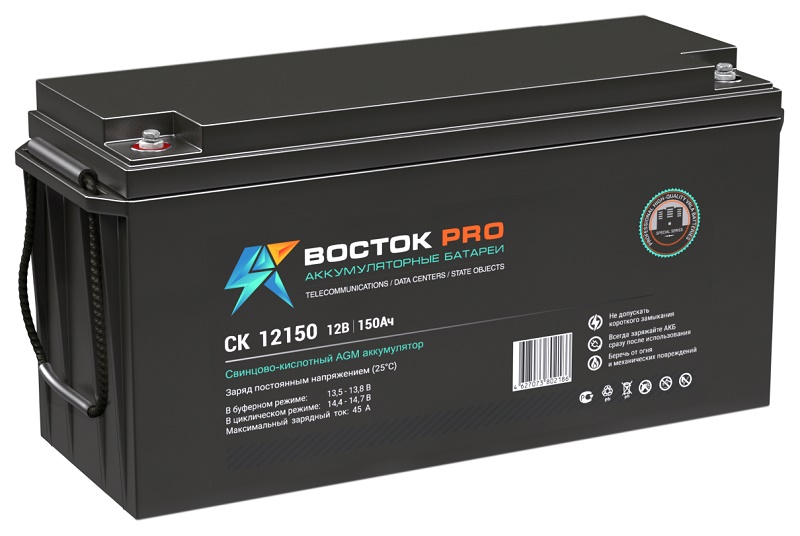 Аккумулятор СК 12150 Восток; 12В; 150 Ач; от -20°C до 60°С; 482х170х230 мм; 46 кг.