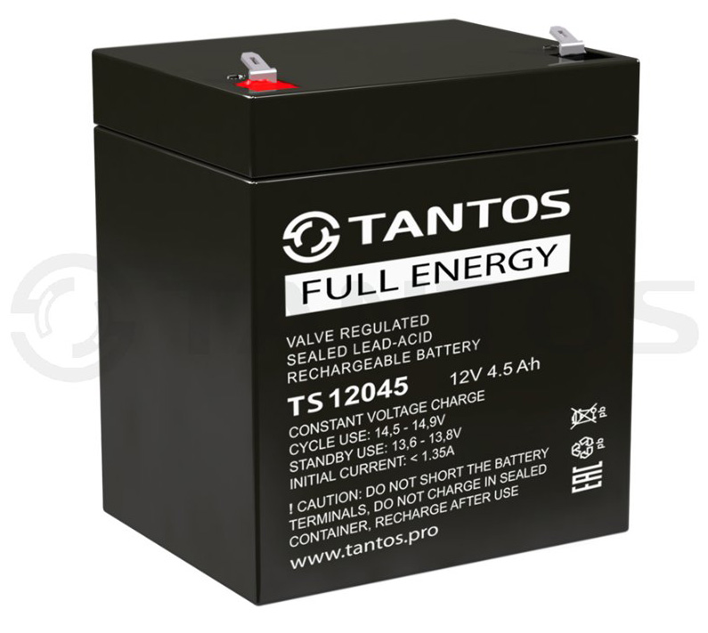TS 12045 аккумулятор Tantos (12В/4.5Ач); свинцово-кислотный; -10°С...+50°С; 90х70х107 мм; 1,37 кг.