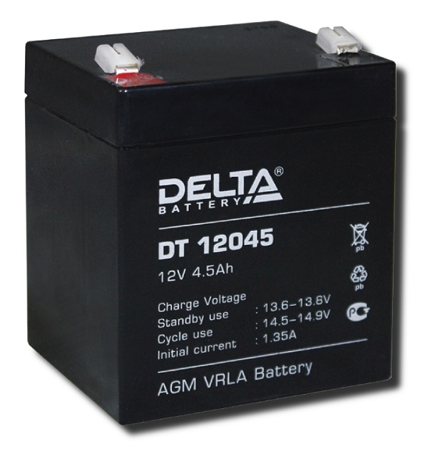 Аккумулятор Delta DT 12045 (12В/4.5Ач) свинцово-кислотный, герметичный, 90х70х101/107 мм, 1,55 кг.