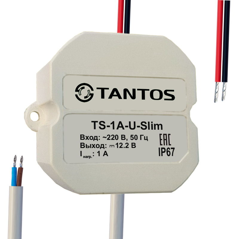 TS-1A-U-Slim источник вторичного электропитания Tantos; 12В, 1А; электронная защита от короткого замыкания и перегрузки по току; автоматическое восстановление выходного напряжения; защита потребителей от перенапряжения на входе; IP67; -40...+40°С; 48×56×28 мм; 0,3 кг.