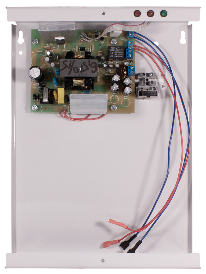 Источник вторичного электропитания резервированный для обеспечения бесперебойного электропитания потребителей при номинальном напряжении 12В постоянного тока и токе потребления до 5А с защитой от глубокого разряда АКБ, электронная защита от КЗ.