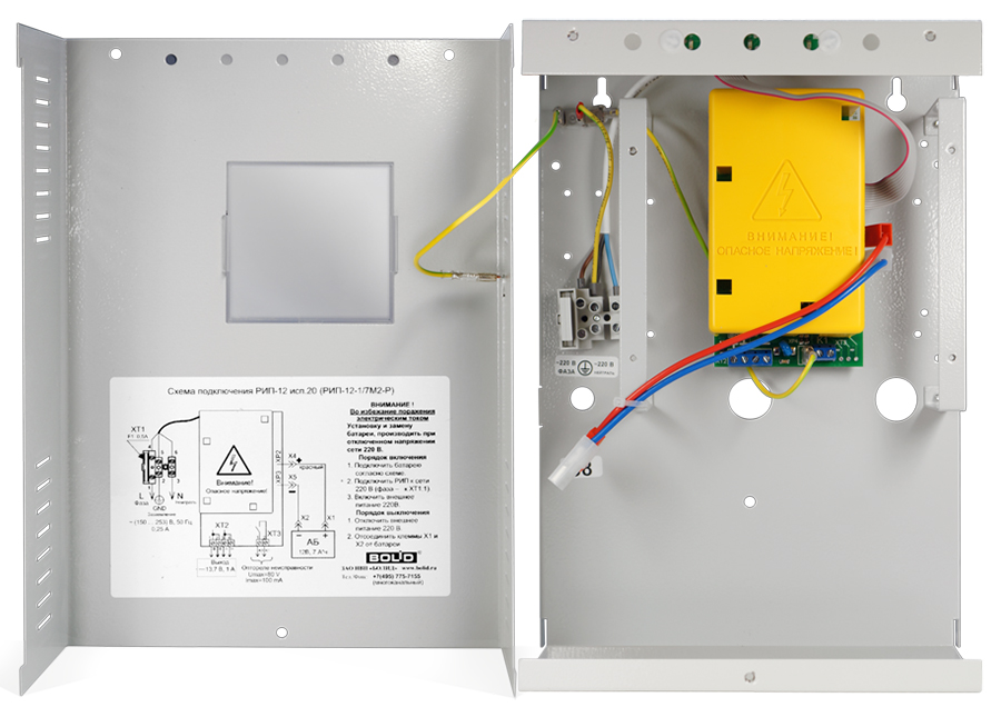 РИП-12 исп. 20 (РИП-12-1/7М2-Р) резервированный источник питания Болид; 12В; 1А; под АКБ 7 Ач; защита от переполюсовки, КЗ, перегрузки по току, превышения напряжения; световая индикация; звуковая сигнализация; IP30; -10...+40°С; металл; 200×280×100 мм; 4,5 кг с АБ.