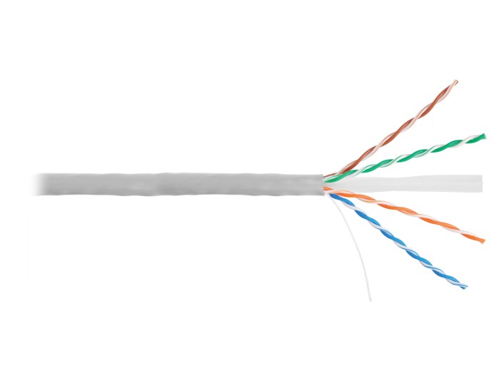 Кабель витая пара U/UTP, категория 6, 4х2х0.55, для внутренней прокладки, одножильный, нг(А)-LSLTx, светло-серый, внешний диаметр 6.1 мм, -20...+60°С, 305 м.