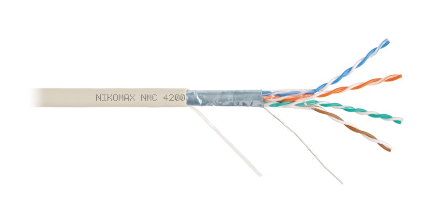NMC 4200L-IY кабель NIKOMAX; F/UTP 4 пары; Кат.5e (Класс D); тест по ISO/IEC; 100МГц; одножильный; BC (чистая медь); 24AWG (0,51мм); полимерный материал нг(А)-LSLTx; внутренний; светло-серый; 305м.