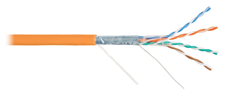 NKL 4200C-OR кабель NIKOLAN F/UTP 4 пары; кат.5e (класс D); тест по ISO/IEC; 100МГц; одножильный; BC (чистая медь); 24AWG (0,50мм); внутренний; LSZH нг(А)-HFLTx; оранжевый; от -20 до +60 °C; длина 305 м.