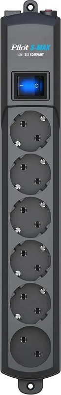 Сетевой фильтр Pilot S-Max, 1.8м, (6 розеток) серый; 16А; 50Гц; 150Дж; 1000А; 220В; 3500Вт; 0.47x0.13x0.081м; 0,79кг.