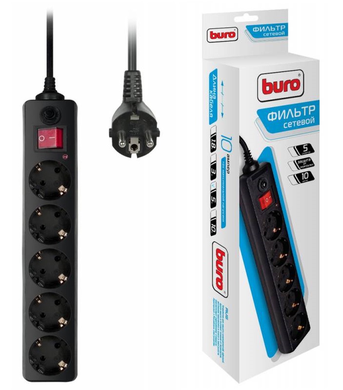 Сетевой фильтр Buro 500SH-5-B 5м (5 розеток) черный