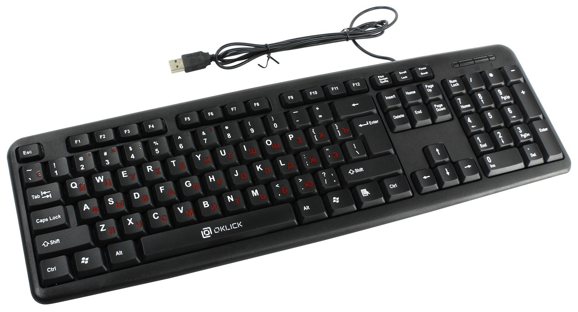 Клавиатура Oklick 90M – компактное устройство в черном корпусе из прочного пластика, обеспечивающее плавные, мягкие и комфортные нажатия. Имеет стильный классический дизайн и двуязычное обозначение кнопок. Русский алфавит выделен красными буквами. Клавиатура Oklick 90M легко подключается к стационарному компьютеру или ноутбуку через интерфейс USB, не требуя установки драйверов. Гарантийный срок эксплуатации изделия, заявленный производителем, составляет двенадцать месяцев. При желании клавиатуру можно установить под небольшим углом, задействовав ножки. Модель удобна, легковесна и доступна любому пользователю.