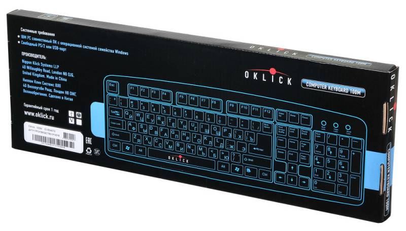 Клавиатура Oklick 100M черный PS/2, длина кабеля 1,5м, цвет черный.