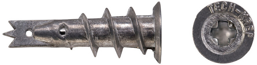 Особенности: имеет плоскую головку с крестообразным шлицем PH, самонарезающую резьбу с крупным шагом и наконечник в виде бура. Конструкция дюбеля предотвращает его самопроизвольное выкручивание и обеспечивает надежное закрепление без распирающего усилия. Предварительное сверление отверстия для монтажа не требуется. При необходимости дюбель может быть демонтирован и использован повторно.