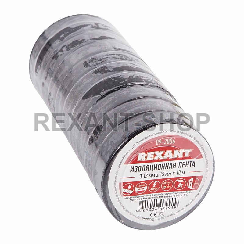 Изолента 15мм х 10м черная REXANT(09-2006); ПВХ; от -10°С до +65°С.