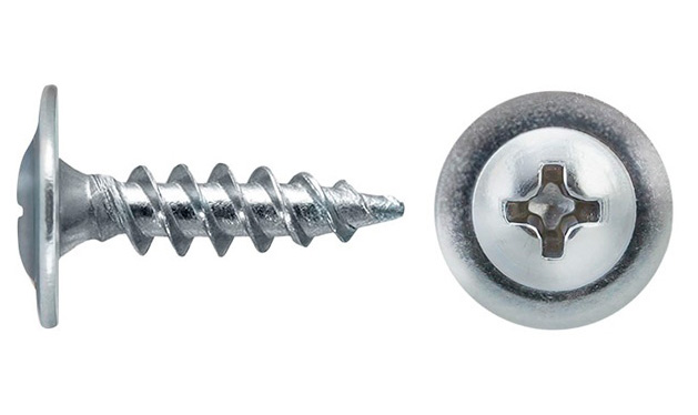 Предназначен для крепления листов металла до 0,9 мм без предварительного крепления. Имеет галетную головку с пресс-шайбой, крестообразный шлиц Phillips №2, острый наконечник.