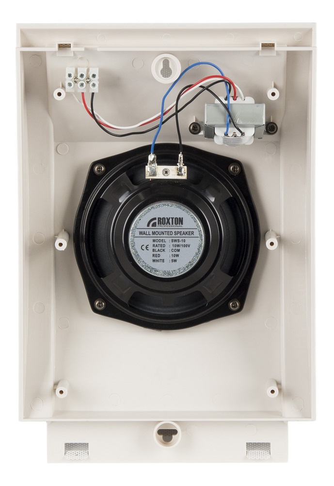 SWS-10 (ROXTON) настенный громкоговоритель 10/5/2.5 Вт, 80 Гц – 16 кГц, широкополосный; материал корпуса: пластик (ABS), сталь; тип крепления: винтовое; IP41; 210х312х85 мм; 1 кг.