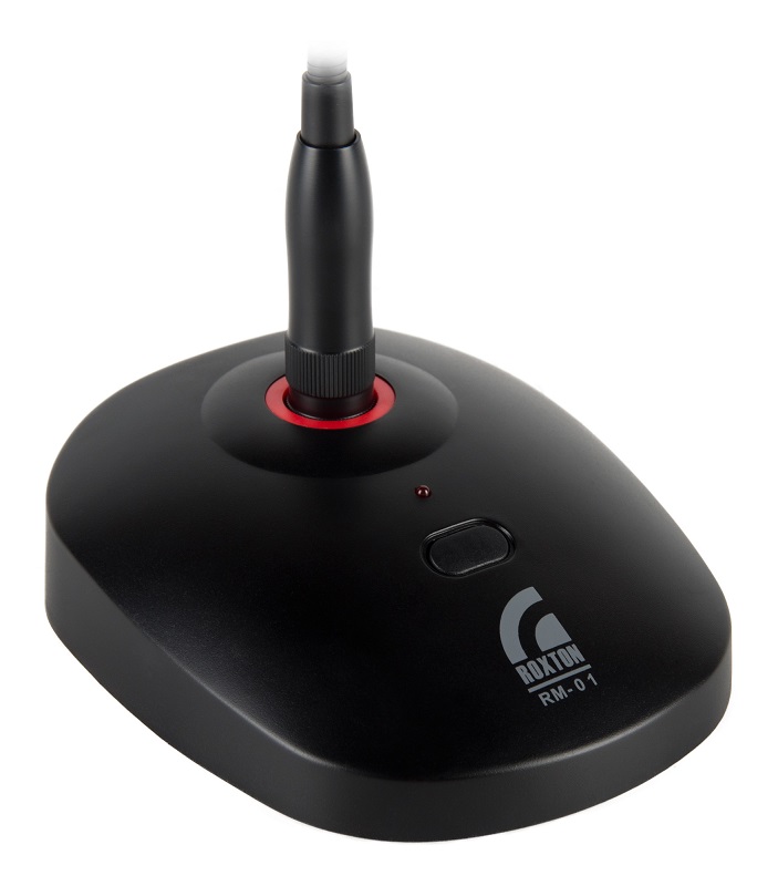 Настольный микрофон ROXTON RM-01 предназначен для подачи речевых объявлений. Включение/отключение микрофона осуществляется кнопкой, размещенной на передней части корпуса подставки. При включении микрофона загорается индикатор, размещенный над кнопкой включения.